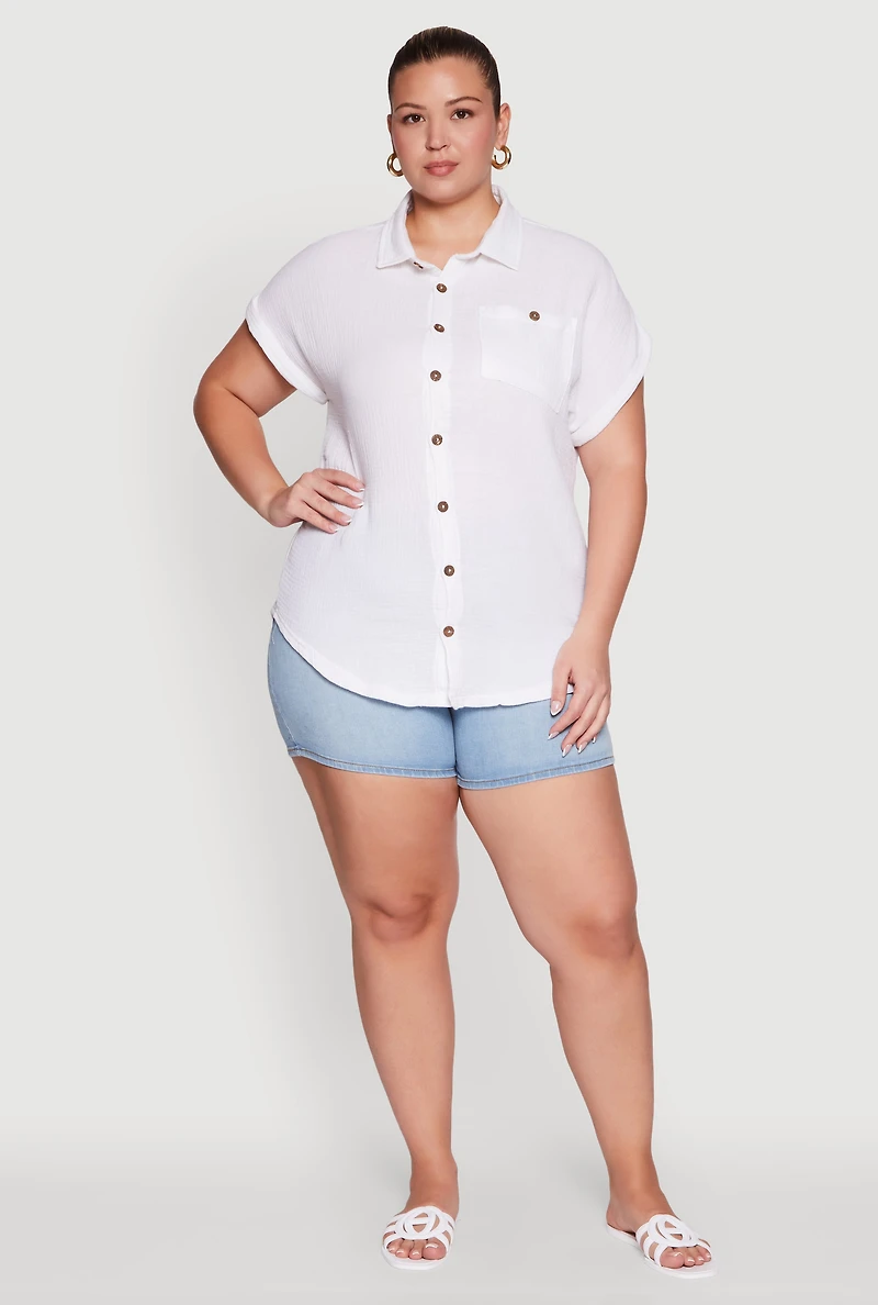 Step into effortless style with the Plus Size Dolman Sleeve Classic Button Front Shirt. This timeless piece combines a flattering classic fit with trendy dolman short sleeves, making it your go-to for casual days or office vibes. The crisp collar and solid color keep it polished, while the easy button front adds a touch of cool confidence. Perfect for those who want comfort and style without the fuss.