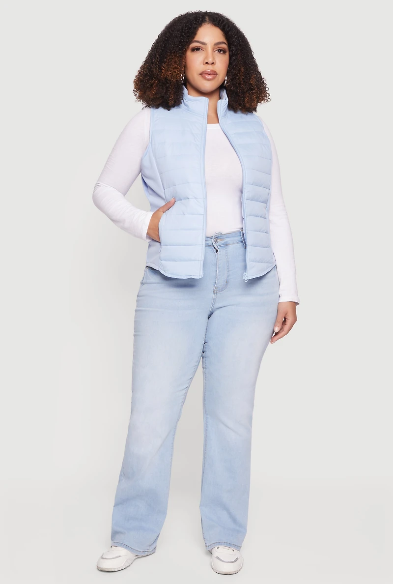 Plus Fleece Lined Side Detail Nylon Puffer Vest