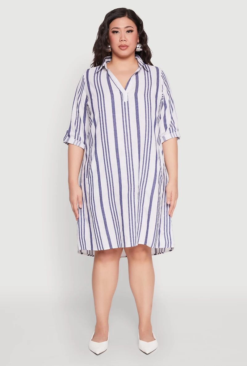 Plus Johnny Collar Striped Dress in Ponce, PR