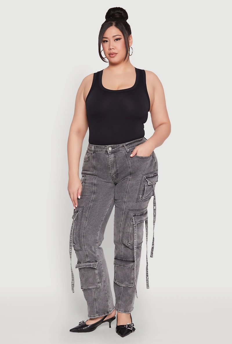 Plus Mineral Wash Pintuck Cargo Jeans