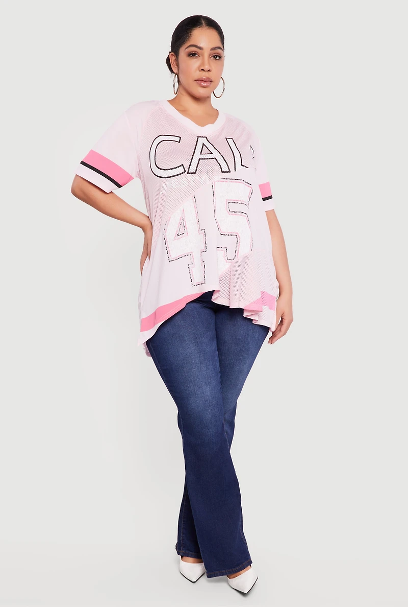 Plus Oversized Cali 45 Patchwork Graphic Mesh Jersey