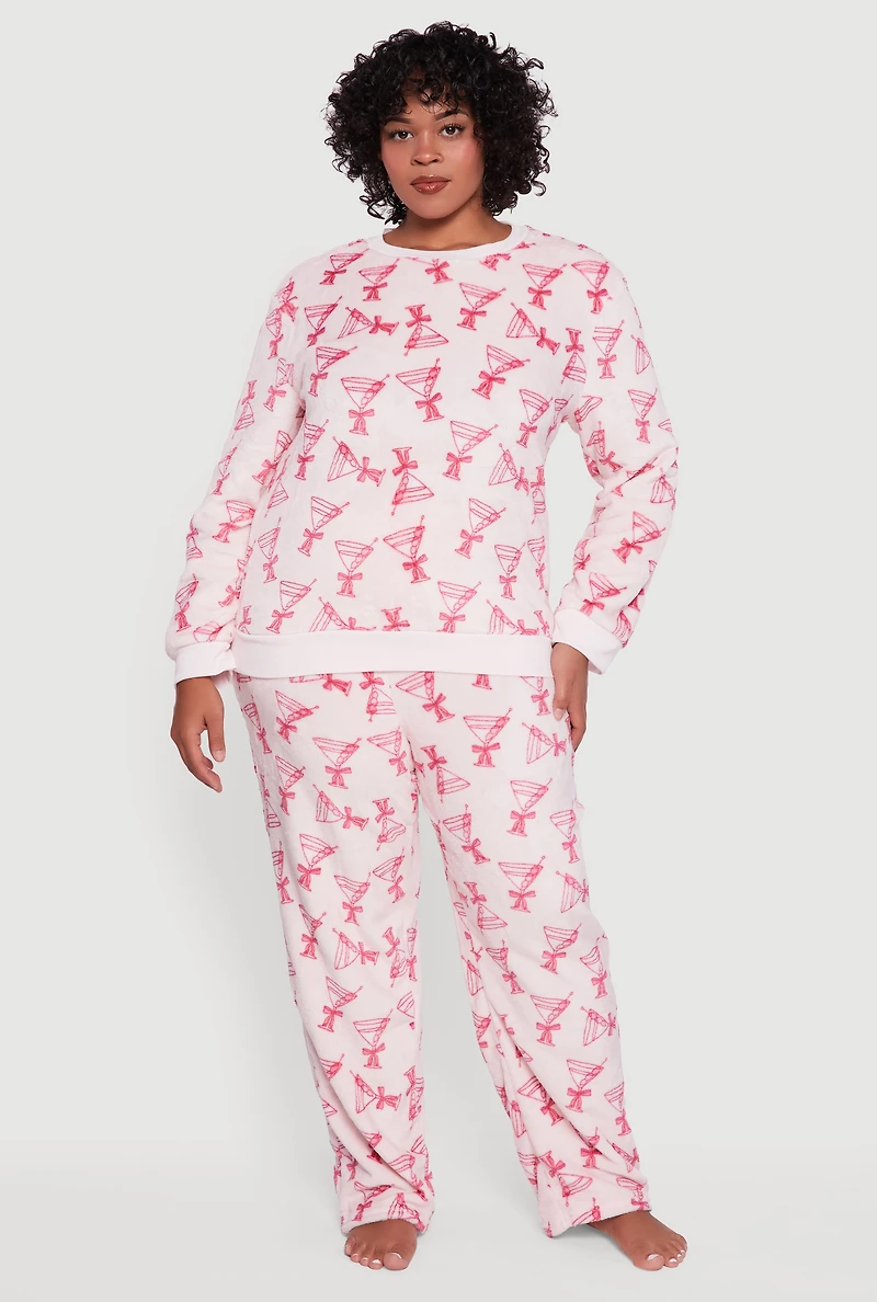 Plus Plush Martini Print Pajama Top and Pants