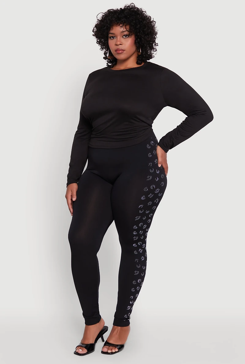 Plus Seamless High Waisted Rhinestone Trim Leggings