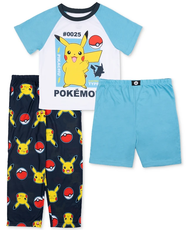 Pokemon Little & Big Boys Short-Sleeve Pajama Top, Shorts & Pants, 3 Piece Set