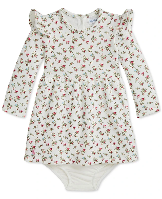 Polo Ralph Lauren Baby Cotton Ruffled Floral Dress with Matching Bloomer