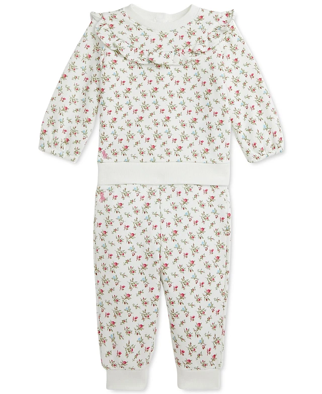 Polo Ralph Lauren Baby Ruffled Floral Sweatshirt & Pants Set
