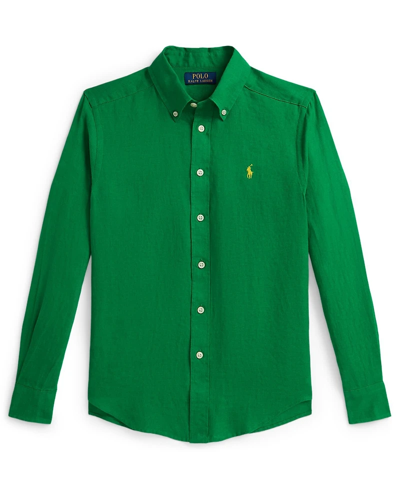 This linen shirt is washed for enhanced softness and finished with our signature embroidered Pony.