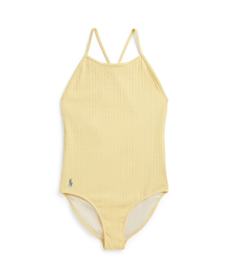 Polo Ralph Lauren Girls' 7-16 Mini-Cable Jacquard Round Neck One-Piece Swimsuit
