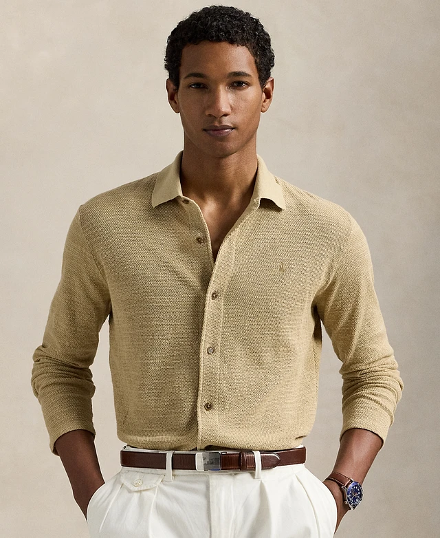 Polo Ralph Lauren Men's Textured Cotton-Linen Shirt Sweater