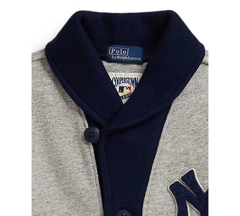 As a boy growing up in the Bronx, Mr. Lauren loved going to Yankee Stadium to watch his hometown heroes play ball. This unisex fleece layer celebrates Mr. Lauren's long-standing love of the Bronx Bombers and the game of baseball with a chenille New York Yankees patch. Its silhouette and color palette are inspired by a vintage New York Yankees team cardigan from the 1920s.