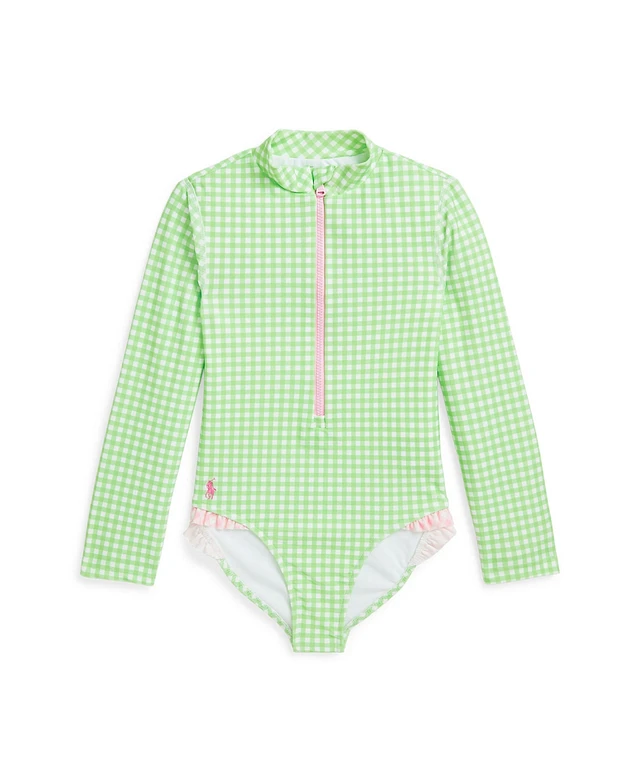Polo Ralph Lauren Toddler and Little Girls Gingham Ruffled One-Piece Rash Guard
