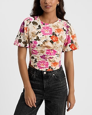Floral Puff Sleeve Corset Cropped Tee
