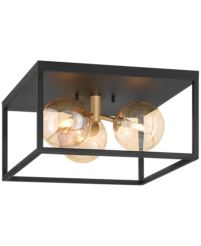 Possini Euro Design Garvin 14 1/2" Modern Flush-Mount Ceiling Light Fixture Kitchen Foyer Hallway 3-Light Led Dimmable Black Glass Metal Bedroom Bathr