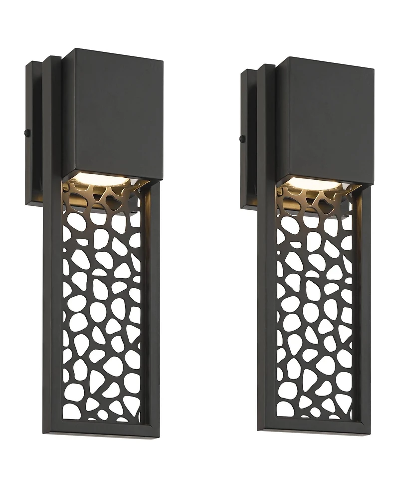 Update your home's exterior with modern charm and sensibility with the set of two Miele outdoor Led wall lights from the Possini Euro Design brand. This design is Dark Sky friendly, with an energy-efficient Led module directing illumination towards the ground, helping you enjoy the beauty of the night sky. The matte black finish frame serves as an eye-catching backdrop with a honeycomb-like pattern. The Miele light is wet location rated for outdoor use.