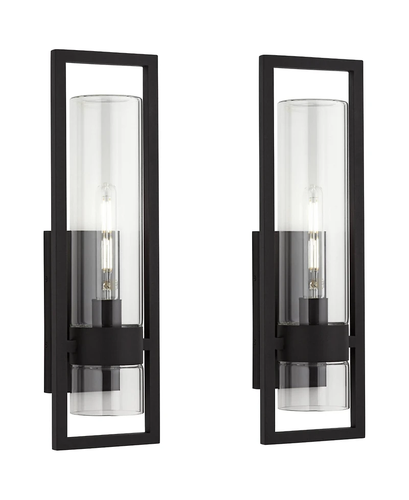 Add the appeal of slender modern design to your home's exterior with the Reed outdoor wall light set from the Possini Euro Design brand. These rectangular designs come in a classy sand black finish, serving as an excellent enhancement to the single bright bulb nestled within the clear cylindrical glass shade. Rated for outdoor use, this is a wonderful lighting option for porches, patios, or framing doors and entrances to your home.