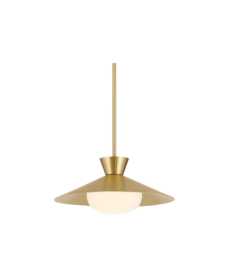 Eye-catching and artistic, the Posisni Euro Design brand presents the vintage industrial style Scherer pendant light, ideal for modern or minimalist living spaces looking for a splash of glamorous color. This inspired pendant light features an elegant antique brass finish over its metal construction, with a flared mesh-pattern antique brass shade creating visual texture and interest. The single bulb is housed within a white glass globe diffuser, evenly distributing illumination throughout your space.