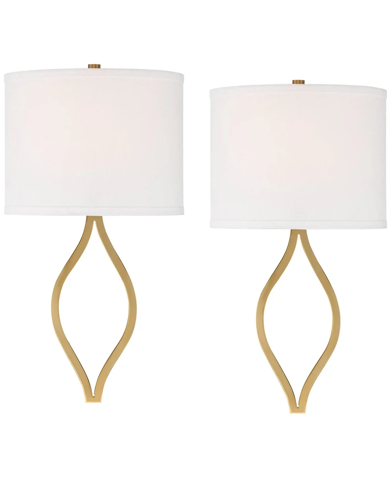 Possini Euro Design Sian Modern Wall Light Sconces Set of 2 Warm Brass Hardwired 10" Fixture Half-Moon Linen Shade for Bedroom in Ponce, PR