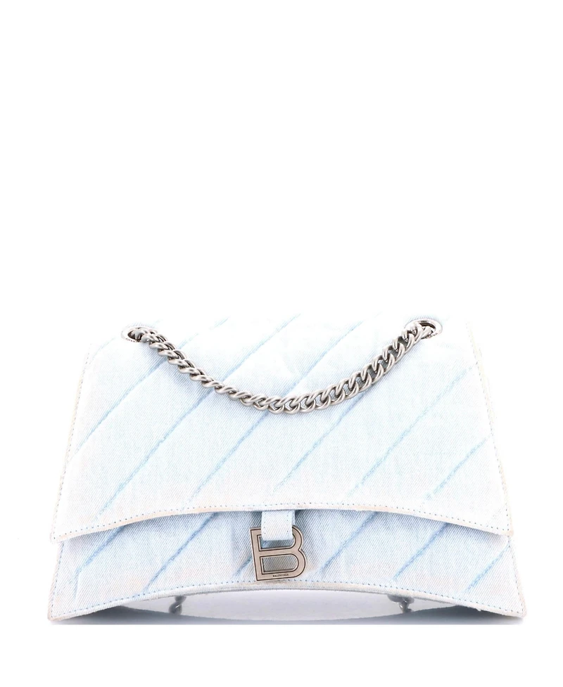 Pre-Owned Balenciaga Medium Crush Chain Flap Bag Quilted Denim