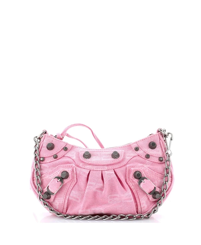 Pre-Owned Balenciaga Mini Le Cagole Giant Studs Shoulder Bag Bb Monogram Denim