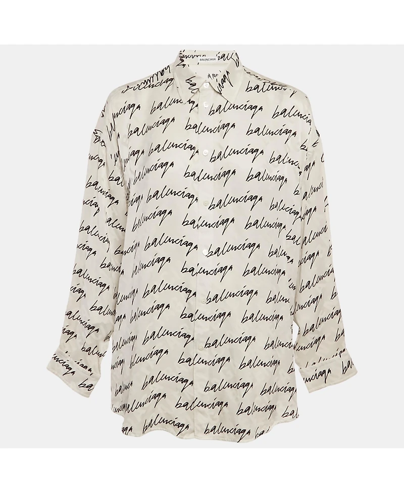 Pre-Owned Balenciaga Women's White Logo Scribble Print Silk Loose Fit Shirt in Ponce, PR