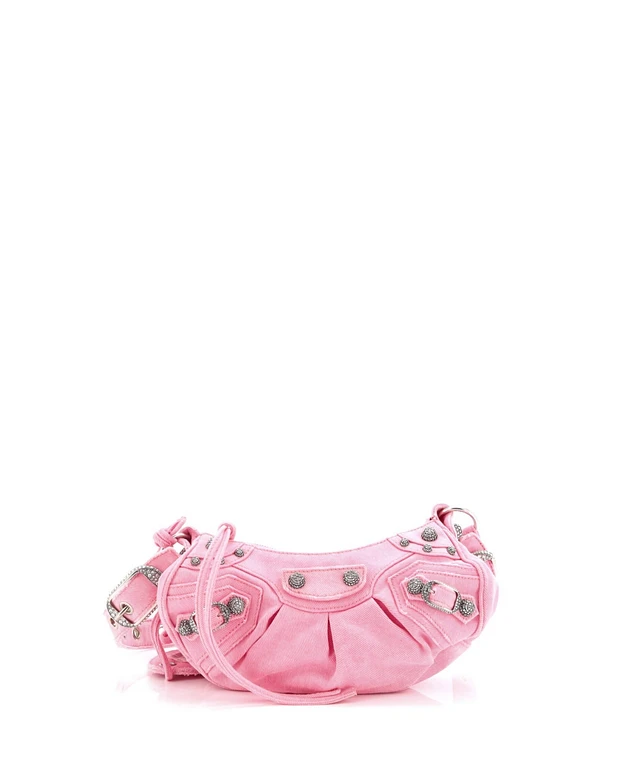 Pre-Owned Balenciaga Xs Le Cagole Giant Studs Shoulder Bag Denim with Crystals