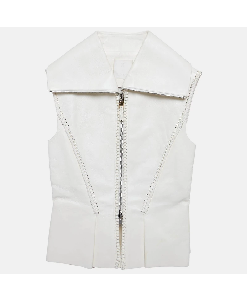 Pre-Owned Givenchy Women's Off-White Leather Braided Detail Sleeveless Jacket