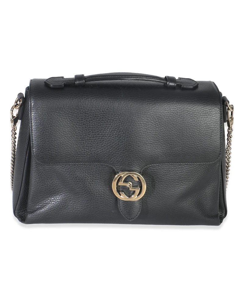 Pre-Owned Gucci Black Pebbled Calfskin Medium Interlocking G Flap Bag in Ponce, PR