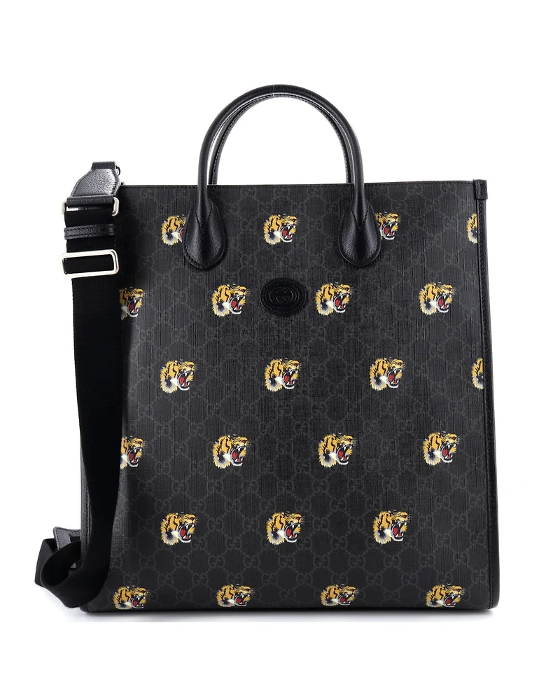 Pre-Owned Gucci Vertical Interlocking G Tote Printed Gg Coated Canvas