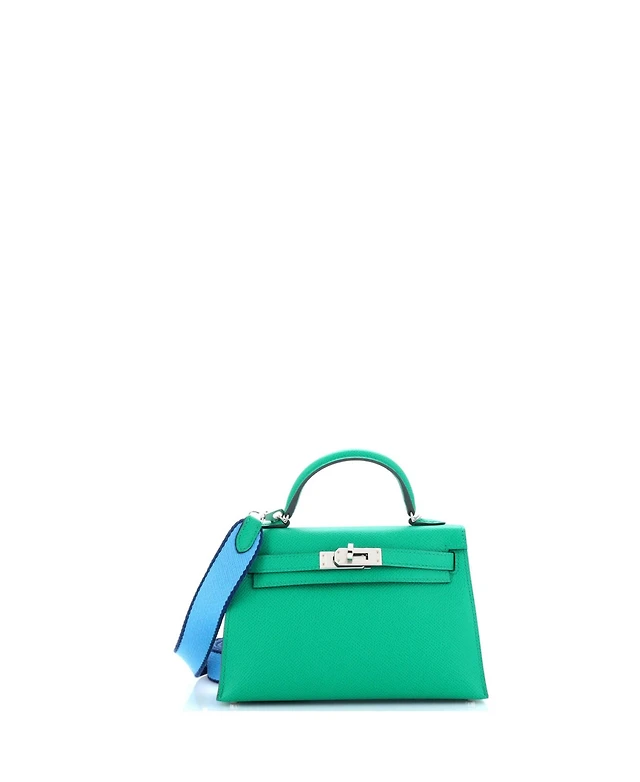 Pre-Owned HERMES 20 Kelly Mini Ii Amazone Handbag Green Epsom with Palladium Hardware