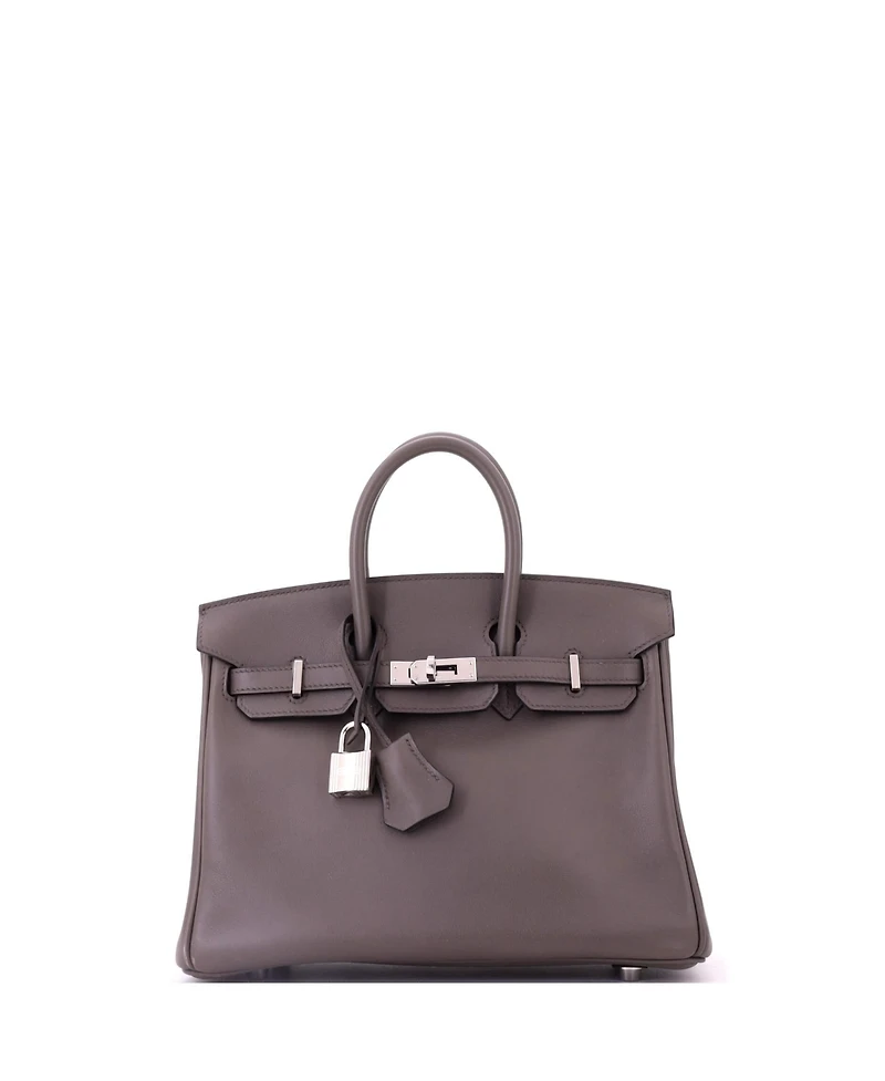 Pre-Owned HERMES Birkin 25 Handbag Grey Swift with Palladium Hardware