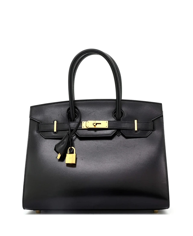 Pre-Owned Hermes Birkin 30 Handbag Black Box Calf with Gold Hardware