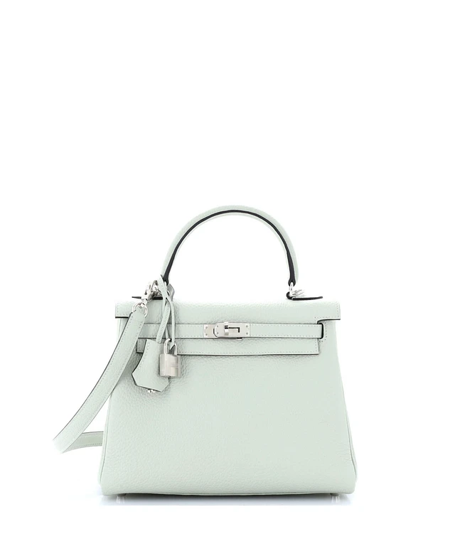 Pre-Owned HERMES Kelly 25 Handbag Grey Clemence with Palladium Hardware