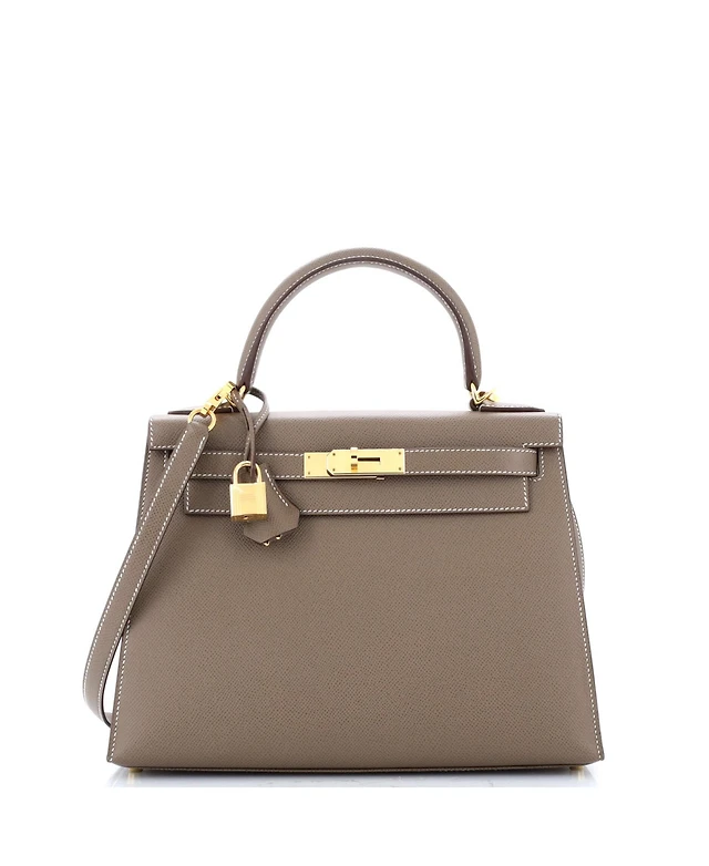 Pre-Owned HERMES Kelly 28 Handbag Grey Epsom with Gold Hardware