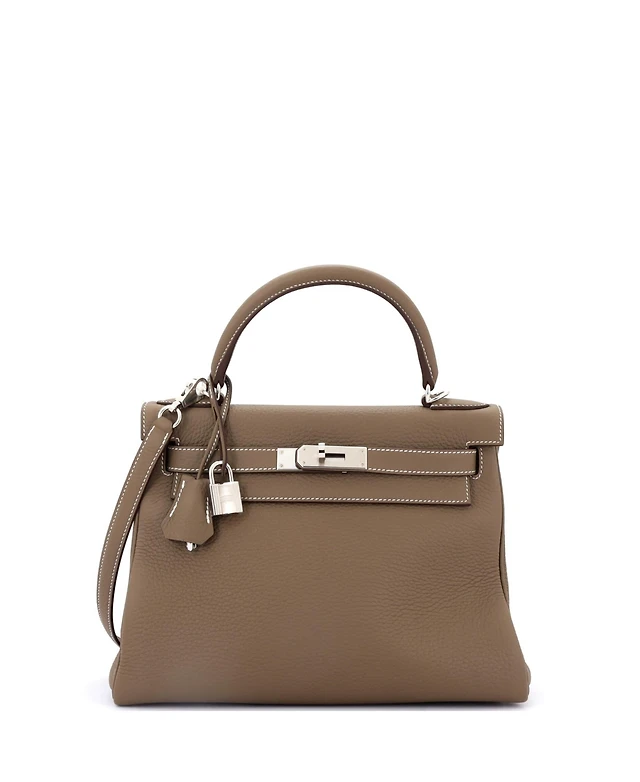 Pre-Owned Hermes Kelly 28 Handbag Grey Togo with Palladium Hardware