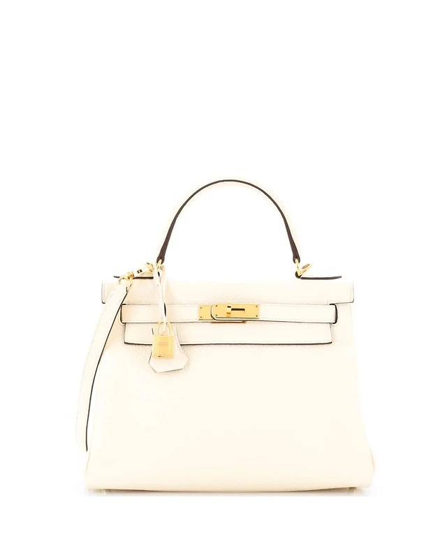 Pre-Owned Hermes Kelly 28 Handbag Light Clemence with Gold Hardware