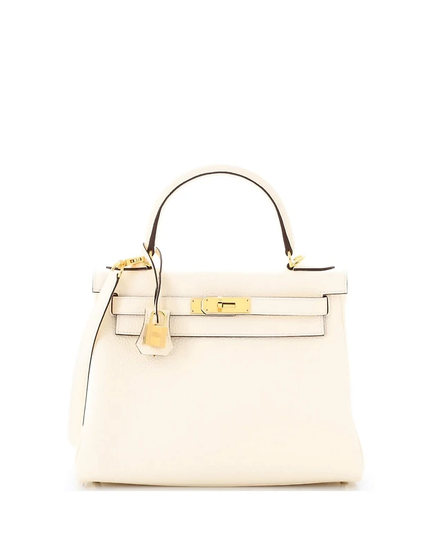 Pre-Owned Hermes Kelly 28 Handbag Light Clemence with Gold Hardware