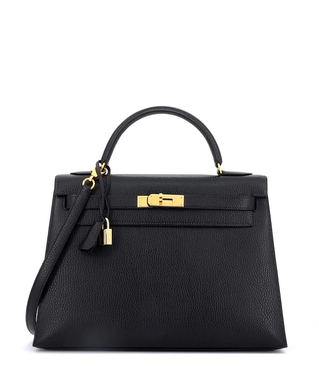 Pre-Owned Hermes Kelly 32 Handbag Black Ardennes with Gold Hardware