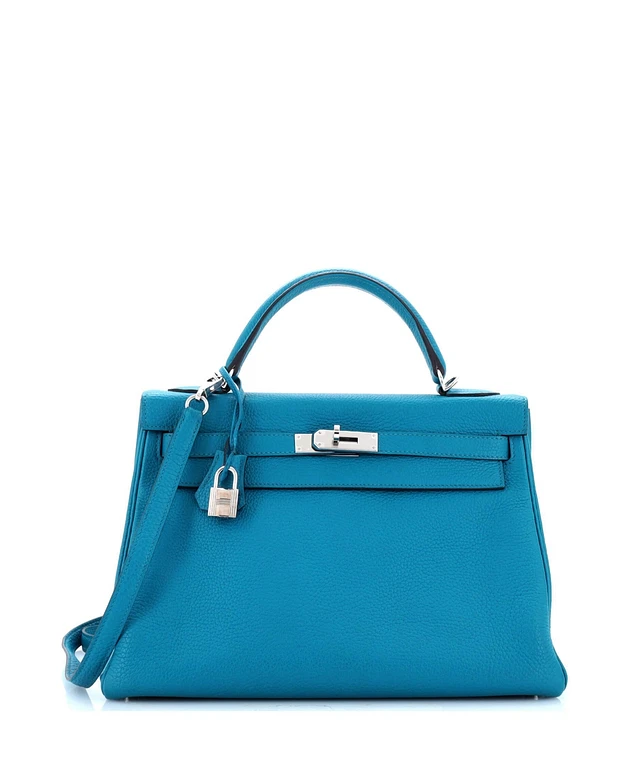 Pre-Owned HERMES Kelly 32 Handbag Blue Togo with Palladium Hardware