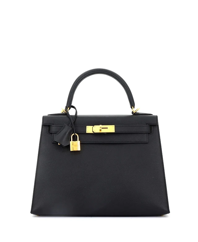 Pre-Owned Hermes Kelly 25 Handbag Black Epsom with Gold Hardware