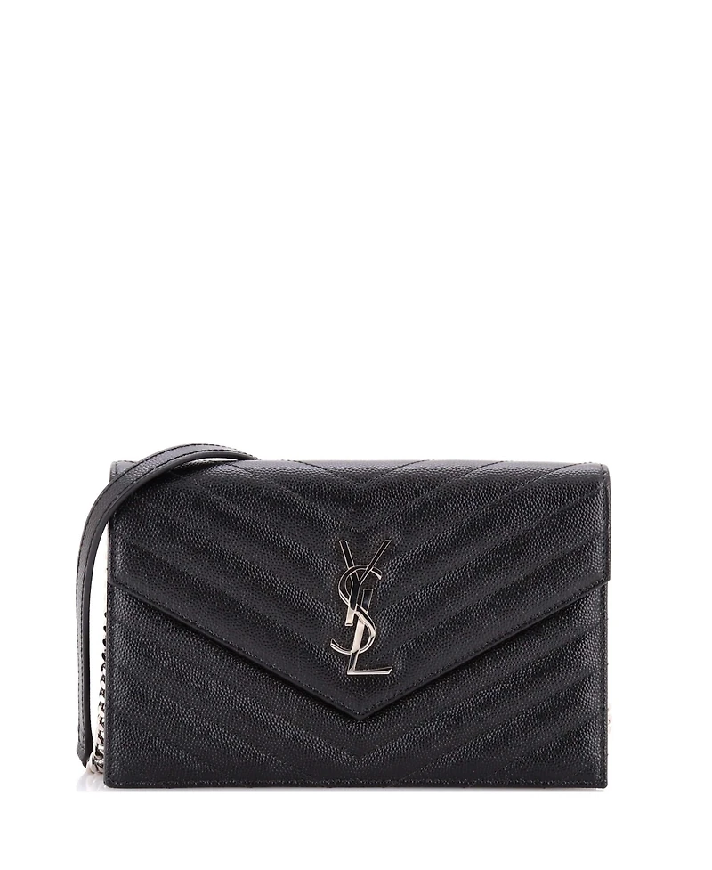 Pre-Owned Saint Laurent Small Classic Monogram Wallet on Chain Matelasse Chevron Leather