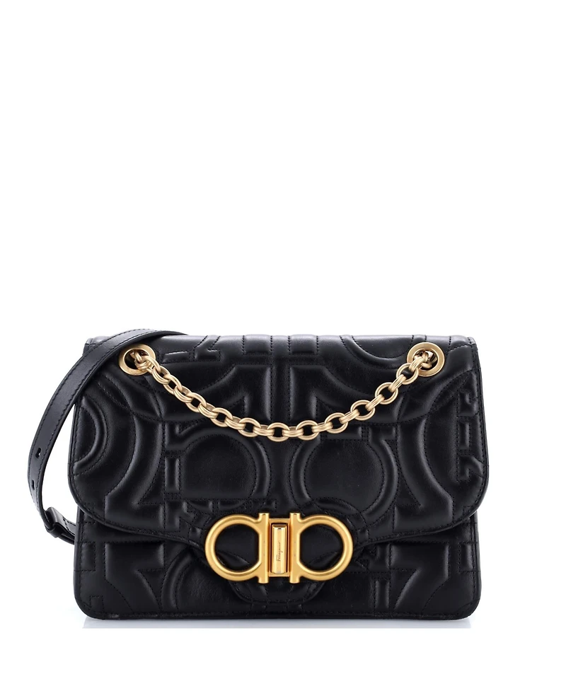 Pre-Owned Salvatore Ferragamo Medium Gancini Turnlock Flap Bag Gancini Quilted Leather