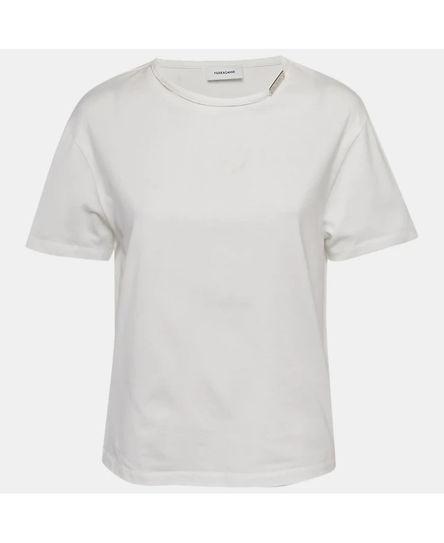 Pre-Owned Salvatore Ferragamo Women's Pre-Owned Ferragamo White Cotton Knit Logo Tab Detail T-Shirt