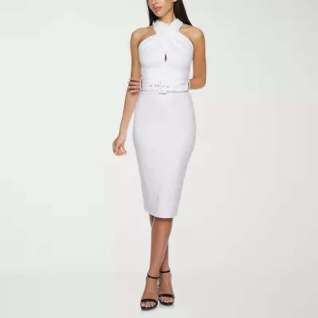 Premier Amour Belted Womens Sleeveless Midi Sheath Dress
