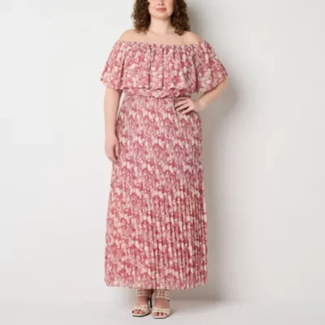 Premier Amour Off The Shoulder Womens Plus Sleeveless Floral Maxi Dress