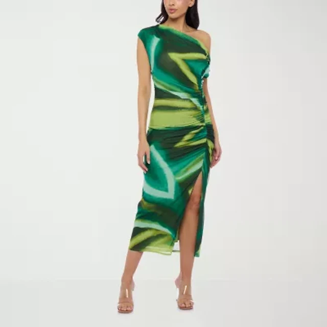Premier Amour One Shoulder Womens Short Sleeve Midi Sheath Dress