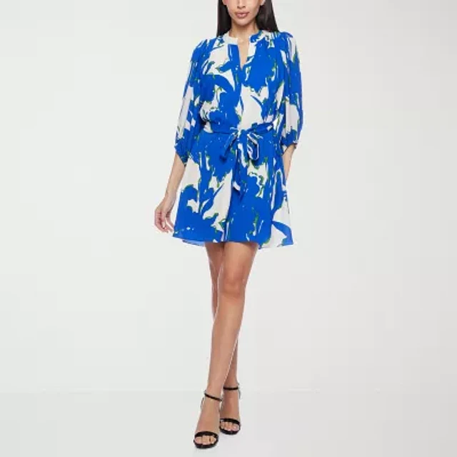 Premier Amour Womens 3/4 Sleeve Floral Fit + Flare Dress