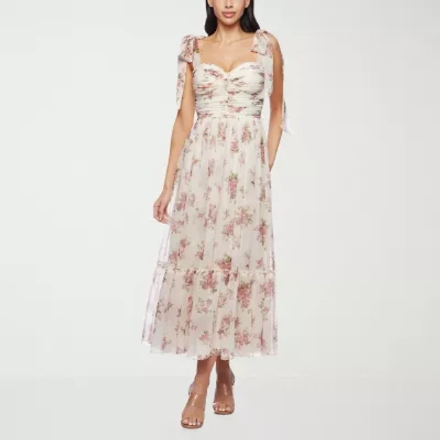 Premier Amour Womens Sleeveless Floral Midi Fit + Flare Dress