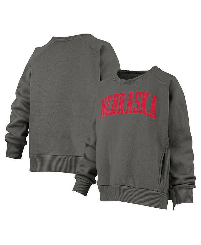 Pressbox Women's Charcoal Nebraska Huskers Pocketed Raglan Pullover Sweatshirt
