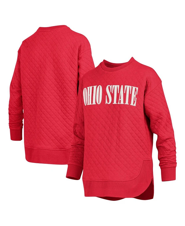Pressbox Women's Scarlet Ohio State Buckeyes Quilted Long Sleeve Pullover Sweatshirt