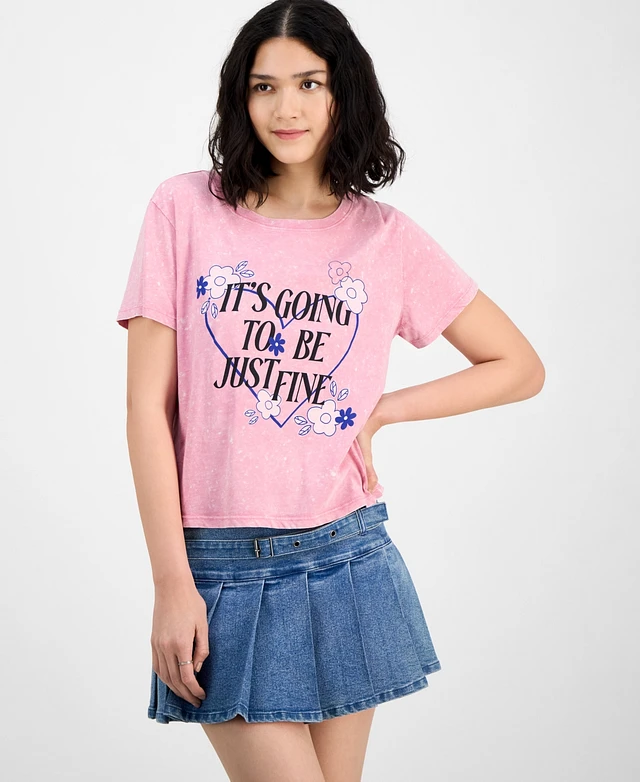 Pretty Rebel Juniors' It's Going to be Just Fine Mineral Wash Cotton Graphic T-Shirt